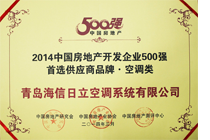 2014年3月19日 海信日立第四次荣获中国房地产研究会、中国房地产业协会“中国房地产开发企业500 强首选供应商品牌·空调类”荣誉证书。