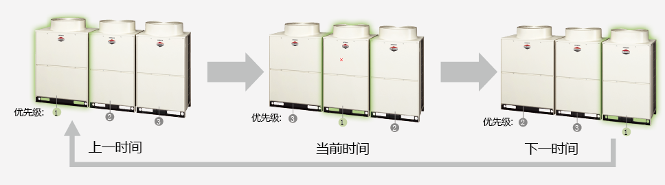 通过轮换运转技术,均衡了室外机模块的运行时间,提高了机组耐久性,延长了空调系统的使用寿命。