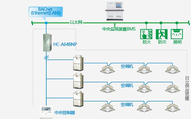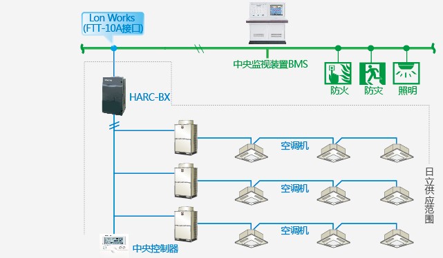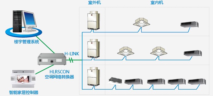 可以适用Lonworks、BACnet、RS-485等多种网络通信协议,通过HARC-BX、HC-A64BNP或HLRSCON将空调设备接入楼宇自控或智能家居系统,HARC-BX、HC-A64BNP和HLRSCON都可以连接64台室内机。
