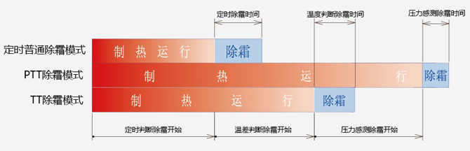 PTT除霜模式,更准确的把握除霜时机,可缩短除霜时间,延长冬季制热运行时间。