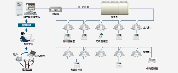 该机组可连入集中控制系统,实现集中控制、远程控制和楼宇集中控制,还可配合空调电费计量软件实现分户计量。