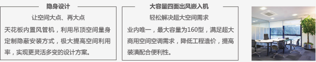 US超薄室内机,机身厚度仅192mm,进深仅447mm,小巧却精致——含丰富的高品质产品设计:全镀锌钢板机身设计、内置接水盘、标配浮子开关,防溢水保护设计、可内置水泵等。