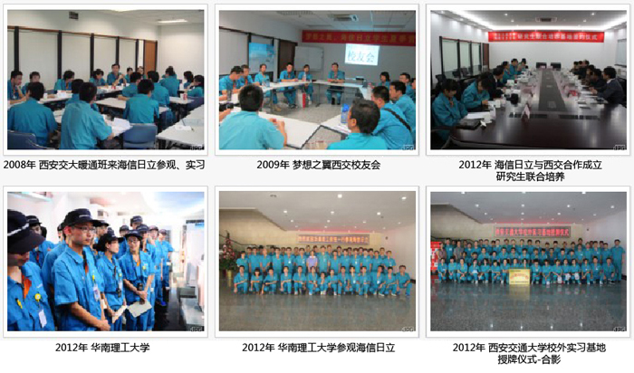 海信日立公司从成立以来,一直保持着和全国知名院校保持密切的联系及合作相继有西安交通大学、华中科技大学、天津商业大学、华南理工大学及山东大学等高校的优秀学子来公司参观、实习。