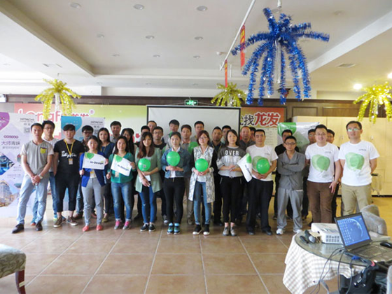 集体合影,绿气球点亮现场气氛!