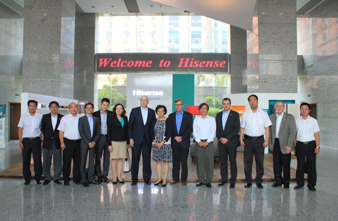 2015年8月21日,海信集团总裁于淑珉在海信大厦会见了来访的JCI(江森自控)董事会主席兼首席执行官Alex、BE总裁Bill一行。于总代表海信集团对Alex主席一行专程来访表示欢迎,她向客人介绍了海信集团的历史沿革及企业情况,对双方合作的海信日立公司给予了充分肯定。