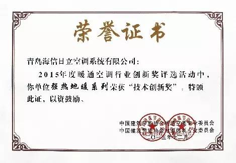 获得中国建筑节能协会颁发“技术创新奖”