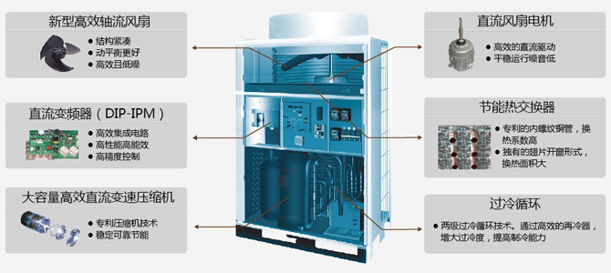 室外机压缩机全部采用直流变频压缩机,风扇电机全部采用直流电机,全系列产品节能性及产品综合能效系数得到进一步提升!