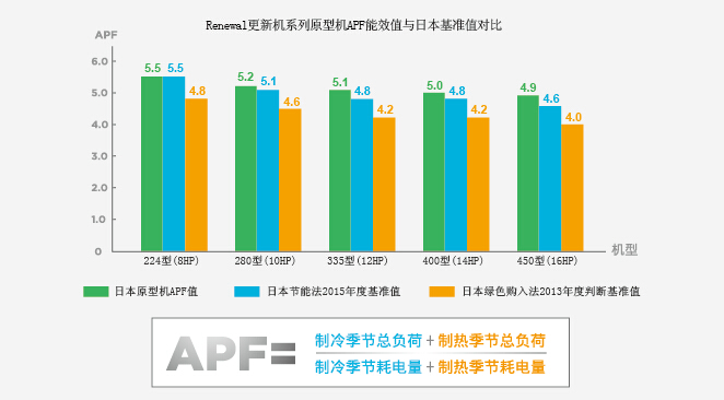 Renewal更新机全系列产品的IPLV(C)远超国家一级节能限定值,其原型机产品在日本测试的APF能效值高出日本节能法2015年度基准值,领跑国内中央空调行业新标准,机组使用更节能。