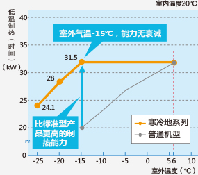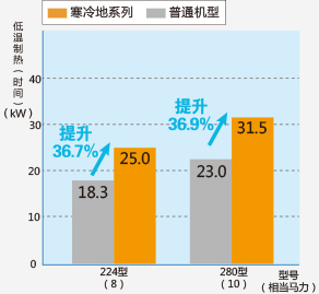-15℃维持额定制热工况制热能力,能力无衰减。(以280型标准模